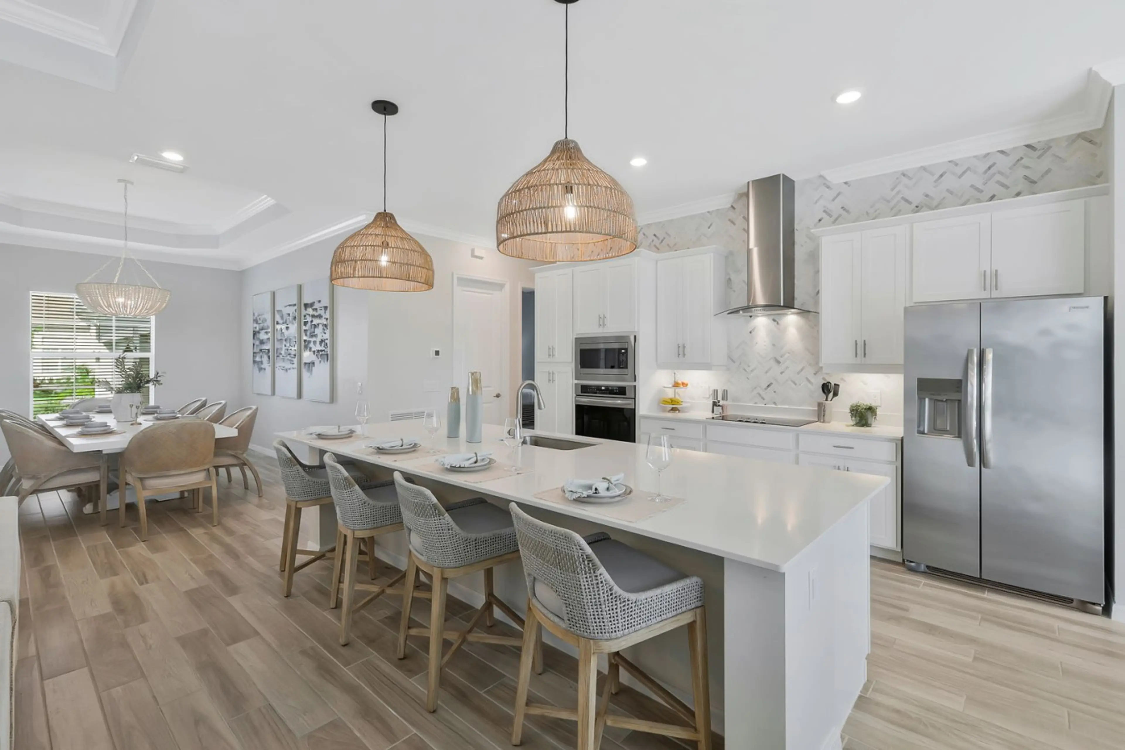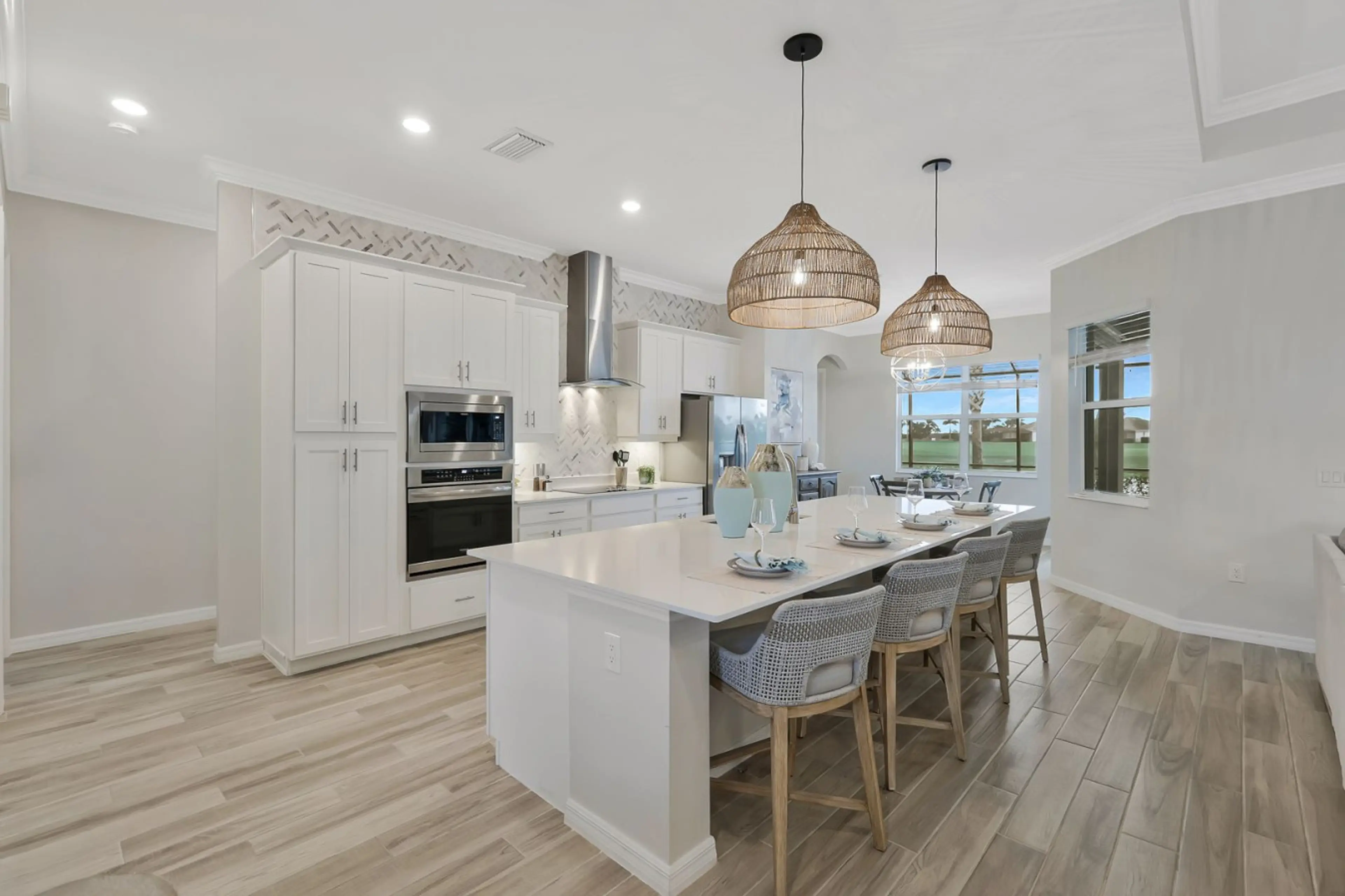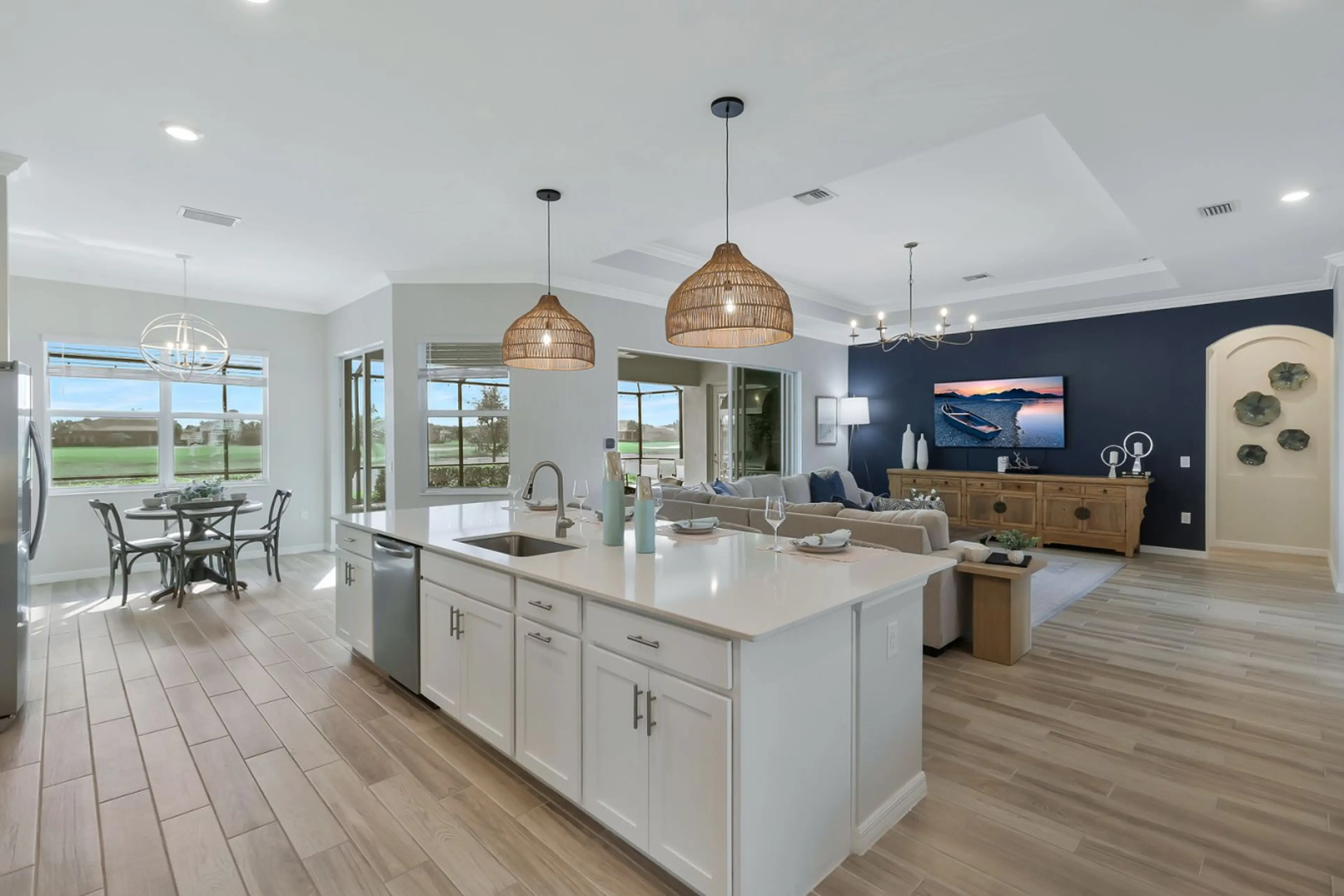 Designer inspired, elegant home at The National Golf and Country Club. This newer home has a spacious, open concept gourmet kitchen, living area overlooking the pool / lanai area, dining room, 4 spacious bedrooms, 2.5 bathrooms, with a pool/jacuzzi in enclosed lanai with great outdoor space. Breat...